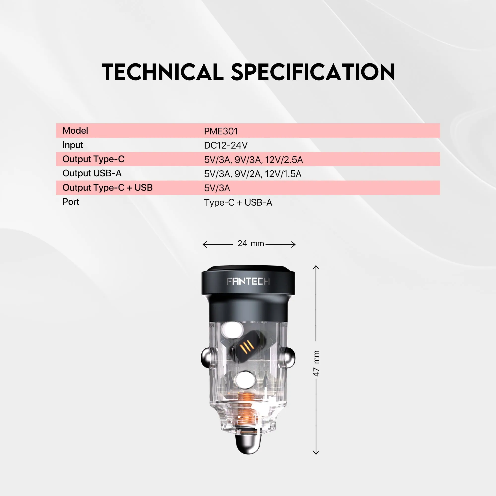 Output Type-Cย :ย ย 5V/3A, 9V/3A, 12V/2.5A